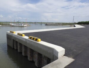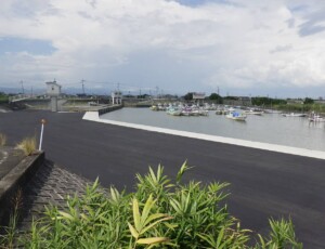 この工事は戸ヶ里避難港の敷地や舗装を高くする(かさ上げする)工事で、高潮や津波などによる浸水被害を軽減し、避難港としての機能や防災能力を向上させる目的です。