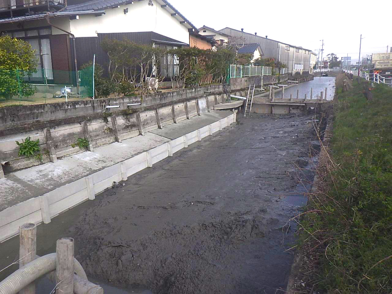 作出地区の豪雨による災害の防止や、クリーク(農業水路)の機能回復のと施設の保全を目的とした工事です。